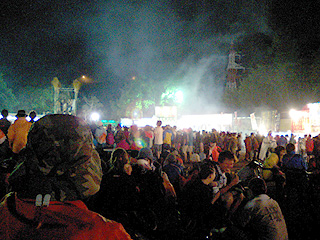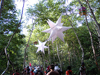 ▼ようやくペースをつかみ、快適に過ごすために食ってばかりいました。芝生で昼寝もしたし。ここまでおおむね晴れ続きだった苗場もこの日はようやく小雨が降ったのですが、大した量ではなく、わざわざ買ったカッパが役に立つ機会が来てよかったーてなもんでした。DEERHOOFの前半を犠牲にして朝イチで見に行った面影ラッキーホールが本当に良かった…。「面影ラッキーホールが良かった」と人に言って、「それどんなん?」と尋ねられても、淫靡な歌謡曲ファンク、などと薄ーい回答しか出来ない自分が恨めしいです。間違いなく3日間で目撃した中で一番のエンターテインメントでした。DEERHOOFはショウとしてスケールアップしてましたね。3人オーケストラでした。上原ひろみはプログレメタルでしょう、大群衆がLIQUID TENSION EXPERIMENTまがいのあの凄まじい高圧縮バカバカバカテク音楽に歓声をあげる光景は異様だった。新譜を未だ買ってないBATTLESはドラムの鬼具合にやっぱりケツ蹴られました。あのおっさん凄いです。もっと遅くまで見ていくつもりだったけど、早く宿で寝たかったのでオアシスで暴飲暴食して選挙速報見て就寝しました。 ▼そして30日に帰宅。ベストアクトは面影ラッキーホール、ベストフードは「天国バーガー」としましょう。遭遇した有名人はほとんどおらず、MTVのVJ・BOO氏のみ。絡みはなし。あと面影のゲストに田口トモロヲ氏が1曲だけ出てきました。レアだったのかな。初日はとにかくツライ、もう嫌、て感じでしたが、2日目以降ほどよく雲が出て、人を避けて楽に過ごすように気をつけ始めてからは、俄然前向きに堪能することができました。基本的に「フジロックにでも行かないと見(られ)ない人を見る」という方向でいくといい感じですね。あと宿(しかもかなり近くてきれい)がとれたのは圧倒的によかった。キャンプの醍醐味もあるだろうけど、若くないときっと無理ですわ。