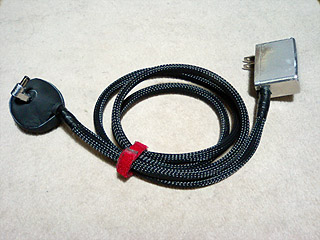 ▼オカルティスト遂に極まる。防磁対策でケーブルに色々巻きすぎて不恰好になっていたギターのエフェクター用アダプターに、見た目を重厚にしたいというだけの理由で、メッシュチューブをかけてしまいました。いやあ満足。見た目重要。