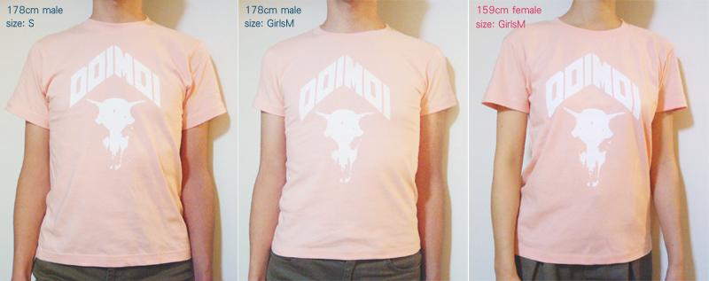 でも芸人諸氏はいつもどおり頑張っていたし、生で見る感慨は充分ありました。最近の売れっ子芸人の中ではなぜかロッチにやたら好感を持っている私です。コカドケンタロウの芸風は何だか「中学時代親しかった奴」という感じの波長(実際誰かに似ているわけでは全然なく)が出てて和むことないですか。 ▼そして昨日は、2〜3週間前に作成してあったシルクスクリーン版を使ってDOIMOIのTシャツを量産しました。助っ人も西から東から駆けつけてくれて(助かりました!!ありがとう)、この日のメンツがそのまま出演するイベントでもやりたいわという感じでした。集合写真撮っておけばよかったな。ということで以下、成果です。クリックすると別ウインドウで拡大画像が開きます。 左からSサイズ(モデル:男)、GirlsMサイズ(モデル:男)、同じくGirlsMサイズ(モデル:女)。Sサイズを一番多く作りましたがGirlsMもけっこうあって、小柄な男性なら全然普通に着れるでしょう。あとMサイズもごく少数のみ作りました。お買い求めはライブ会場にて!愛知県外の方は通販も応相談。価格は手刷り御苦労様プライス2000円で、CDとバンドル(もしくは購入済み現物の・オビ・ブックレット・写メールなど提示)で500円OFF。個体によってカスレやうっすらフレームの線が入ってたりするのもなかなか味です。 ▼明くる月曜日の今日を金曜日気分で過ごして、祝日の明日は大垣ロックフェスティバル。