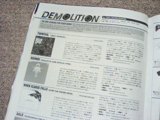 到着するとソフテロのリハはすでに終了していて、ツクモクがセッティングを終えて始めようとしていたところ。ピースフルでどこか外したノリが私の中では勝手にBEACHWOOD SPARKSです。和んでそして洗われた。キーボードのモニターがなかなか上手いこといかなかったようで、小一時間ほど経ったところでジョセフ・アルフ・ポルカに交代。ジョンのサン〜GELLERSラインの必要充分系ローファイアンサンブルに新世代を光を宿す良心諧謔ポップでした。不安定だがやけに線の太さがあるヴォーカルは軽くスティーヴ・マルクマス。そして6月に遊びに行った学祭ライブでたまたま見て凄く良かった、大学時代のサークルの後輩バンド、農閑期の音楽(のリハ。)あくまで古いものを足場にして若者のための新しい響きの曲を作るというスタンスはくるり似ながら、決してフォロワー的な似かたではない。で、どういうバックグラウンドがあるのか分からないですが、農村に口承で伝わっている唄みたいな空気が本当に(バンド名だけではなく)あり、よく読書する感じの歌詞とも相俟って、取ってつけたような凡百の「和風インディロック」とは一線を画す芯の確かさに大いに感服。そして全員演奏がうますぎた。6曲入り200円の入魂のCD-Rも買って、時間がきて新栄トーラスへと移動。▼トーラスの方は過去に何度か共演させてもらったことのある南山アメ研のZhamies企画。数ヶ月前にDAKOTA SUITEの前座で目撃して以来のトゥラリカとの共演を楽しみにしていたのでした。トゥラリカは更に静謐具合に磨きがかかっていて、ギリギリのアイコンタクトで少しずつ曲が進む緊張感に背筋が伸びる。張り詰めた熱視線を飛ばすベースの大西君と、あくまでのらりくらりと変則ビーツを置いていくドラム泉君の見た目の対比っぷりと音の噛み合い具合の差が何だか面白く、更にねじれの位置でパラパラと不協和音を撒いていくタクミ君の耳は鋭いっす。企画主Zhamiesは瞬発力系ガレージパンクとデスメタル的表皮が交錯する奔放極まりない音楽性で、サークル仲間の盛り上がりによってモッシュ・紙飛行機その他でえらいことに。楽しそうだったなー。ラストが大阪からやってきたmu-neujohnで、手数激多ながらもストイックにリピートする暴虐ポストコアサウンドにボコーダー?が絡み、勝手にCYNICを連想して喜んでいました。撤収が遅めになったので打ち上げは泣く泣く見送って帰宅。 ▼そして本日24日の収穫は、CDconnectionから届いたANTHRAX「AMONG THE LIVING DELUXE EDITION」、LOU BARLOW「GOODNIGHT UNKNOWN」、MARSHALL LAW「RAZORHEAD」(08年新作!)。日記本編が長くなったのでレビューはまた明日。▼まず昨日の収穫、今池得三横WILD HONEYにてRIK EMMETT「THE SPIRAL NOTEBOOK」、数週間迷った挙句、名盤すぎるので外盤に買い替え。そして今日は駒ヶ根くんだりでりんご狩りなんぞをして参りました。ヨメさん一家で段ボール数箱のリンゴを収穫し、名物ソースカツ丼を食べ(そのへんのフードコートで売ってるのとは完全なる別物です!!)、駒ケ岳ロープウェイで標高2600mくらいまで行って帰って、温泉まで入って夜名古屋に戻るという絵に描いたような行楽デイを過ごす。そして明日はバンド練習→リハ→リハ見学(別会場)→ライブ→打ち上げ?という高圧縮型ライブデイになる予定。