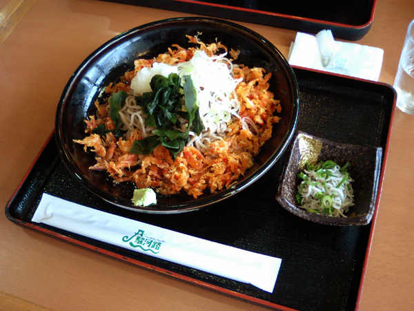 雨天ながらもまずまず好調な流れ。車中、コンビニで衝動買いした「最凶の暴君ハバネロ」を開けるも、強烈に匂うとして顰蹙を買う。昼は早めに富士川にて各々思い思いの桜エビの何かを食べる(私は写真のそば)。展望窓の向こうは完全に曇りで、富士山が裾野の切れ端しか見えず。